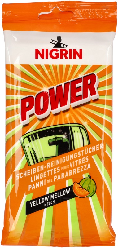 Nigrin POWER Kunststoffpflege-Tücher Yellow Mellow (Honigmelonen-Duft) je 20 Tücher im wiederverschließbaren Flatpack im 20er T-Dsp.