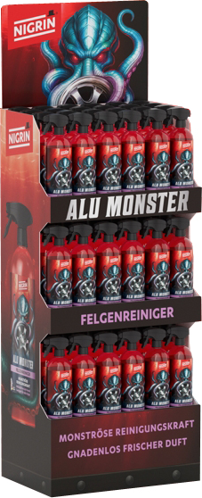 Nigrin Alu-Monster Verkaufsaufsteller 84tlg. - Bodendisplay bestückt mit 84x Nigrin Alu-Monster Felgenreiniger 1000ml