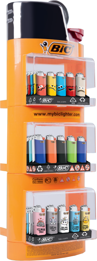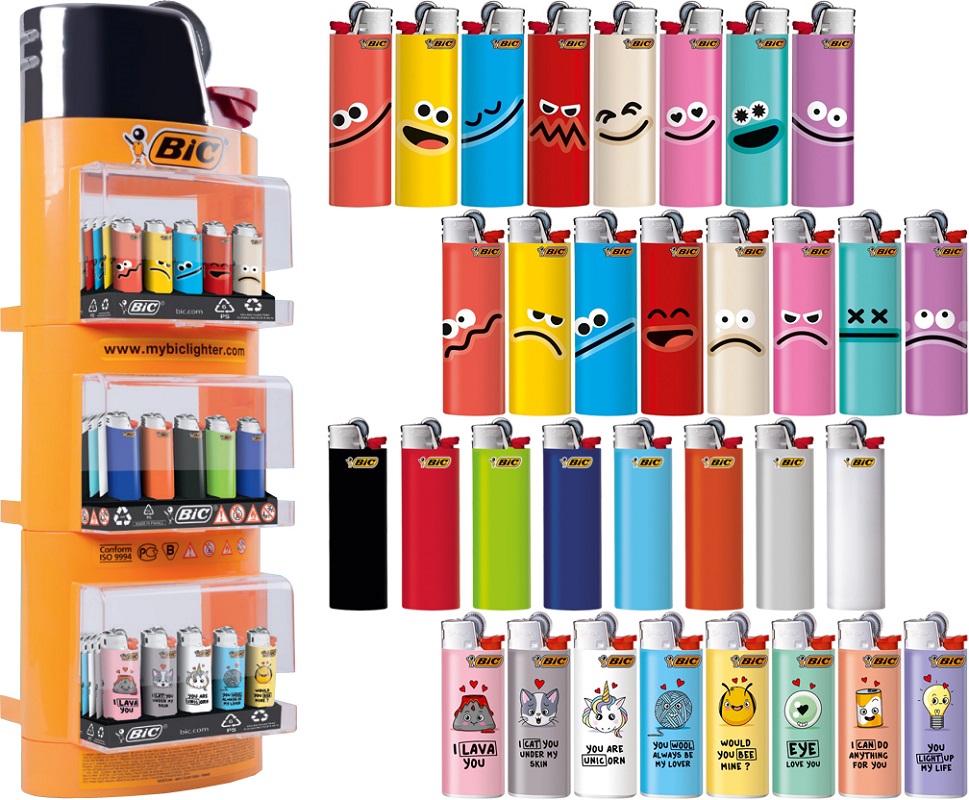 BIC Aktionspaket 1 - 151tlg. - 1x Lighter Shape Display + 50x Maxi Emotions + 50x Maxi Standard + 50x Mini Pun