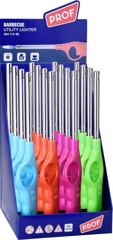Stabfzg./Kerzenanzünder nachfüllbar normalflamme 4/s ca. 26,5cm (Blau, Pink, Rot, Grün) im 16er T-Dsp.