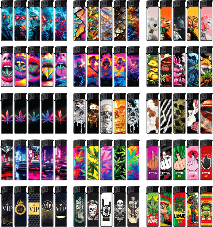 Elektronik Jet Flame Fzg. - 750 Stk. MIX Motiv Sortiment, 15 Modelle je 50 Stk.