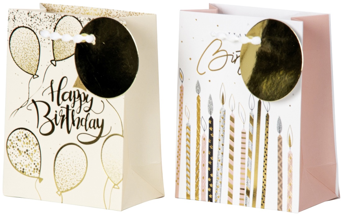 Geschenktüte "Happy Birthday" feierliche Designs mit Luftballons & Kerzen ca. 14,6 x 11,4 x 6cm