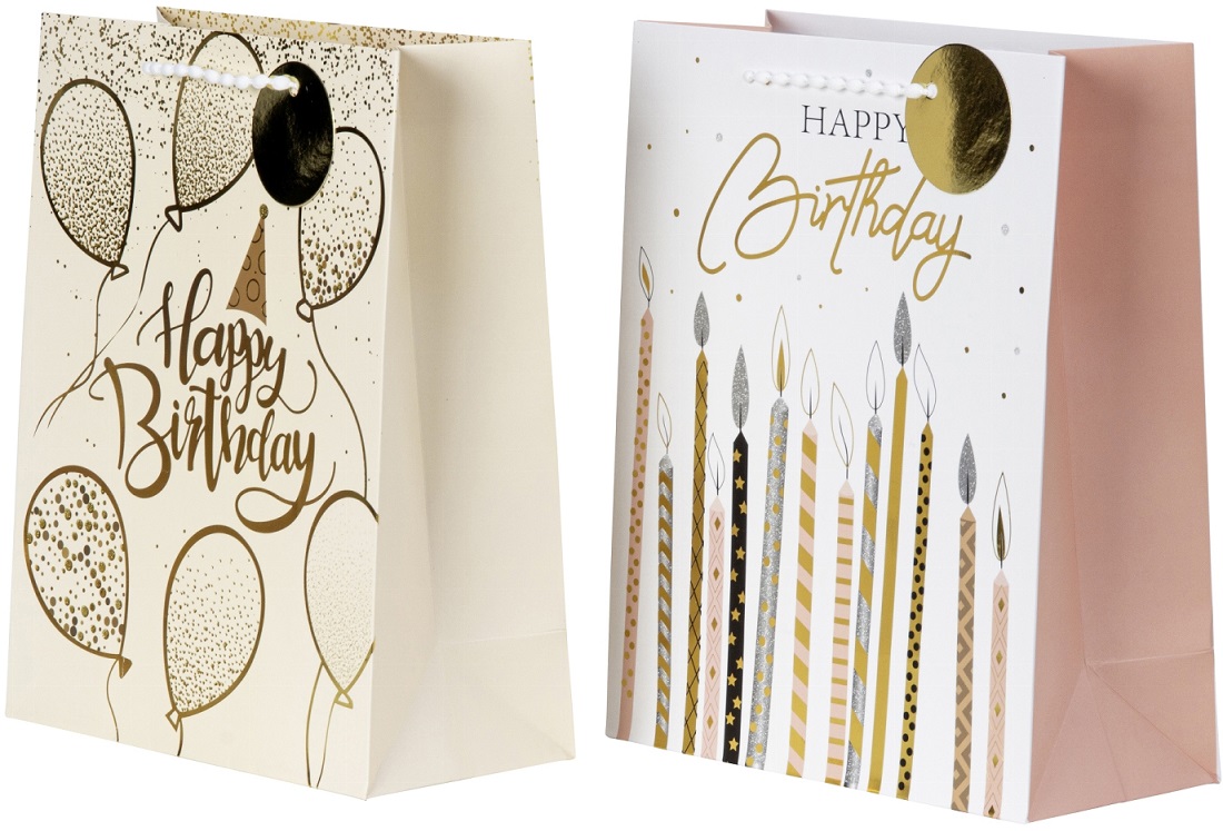 Geschenktüte "Happy Birthday" feierliche Designs mit Luftballons & Kerzen ca. 32