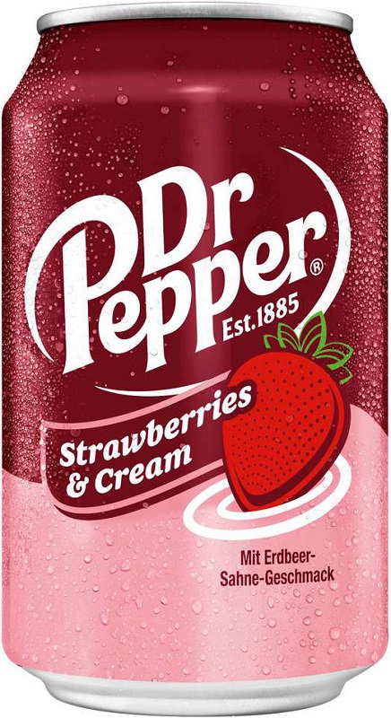 Dr.Pepper Strawberries & Cream Kultgetränk aus den USA Kohlensäure- und koffeinhaltig 330ml (DPG Einwegpfand/Pfanddose) im 24er Tray
