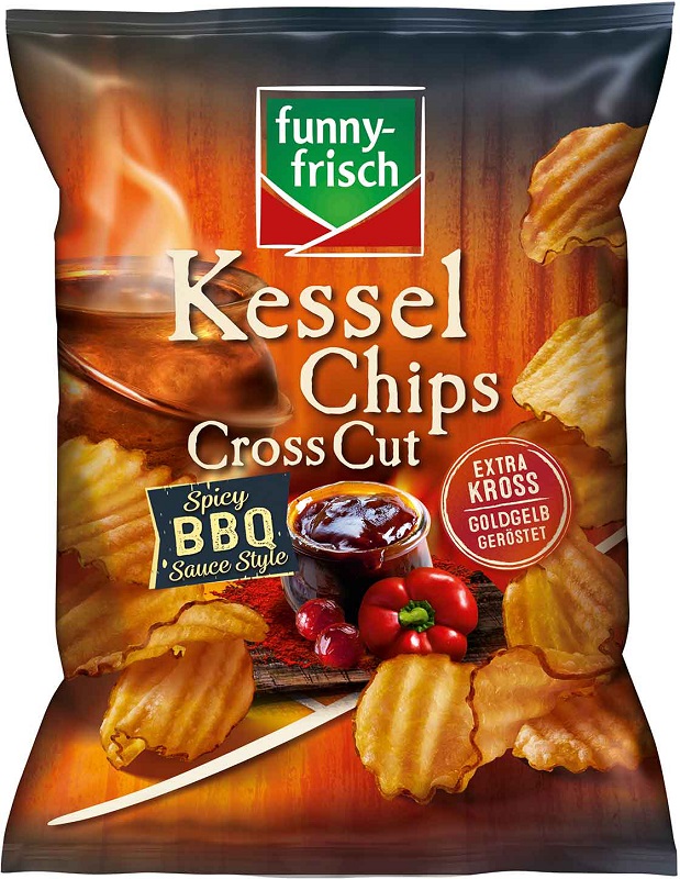 Kessel Chips funny-frisch Cross Cut Spicy BBQ geriffelte Kartoffelchips mit BBQ-