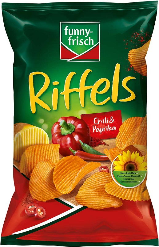 Riffels Chili & Paprika funny-frisch ofengebackene, geriffelte Kartoffel-Snacks mit würzig, scharfem Paprika Geschmack im 150g Beutel