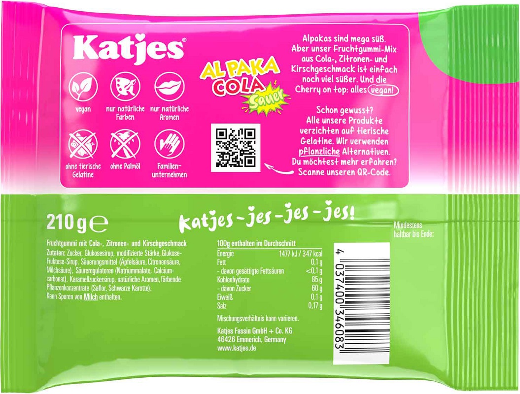 Katjes Al Paka Cola Sauer, saures Fruchtgummi mit Cola-Geschmack, Für Veganer ge