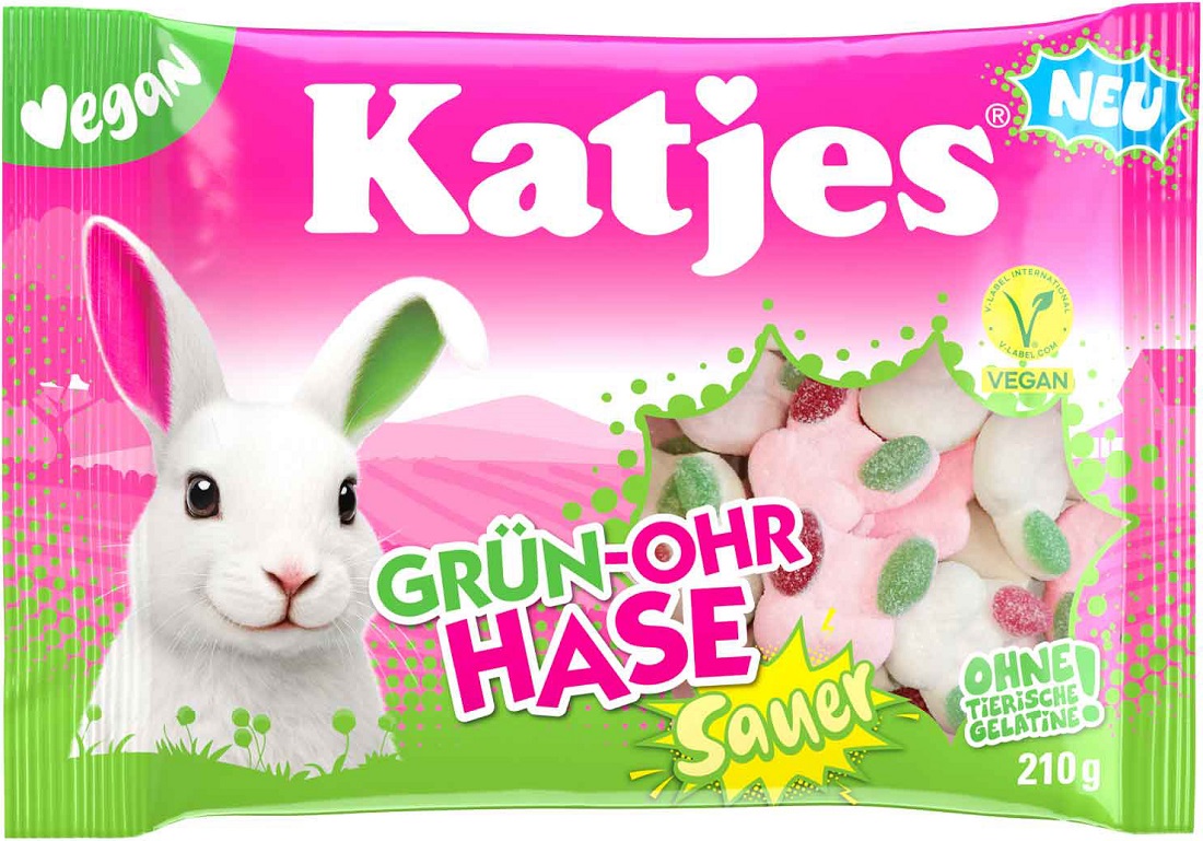 Katjes Grün-Ohr Hase Sauer, saurer Schaumzucker mit Fruchtgummi natürlichen Arom
