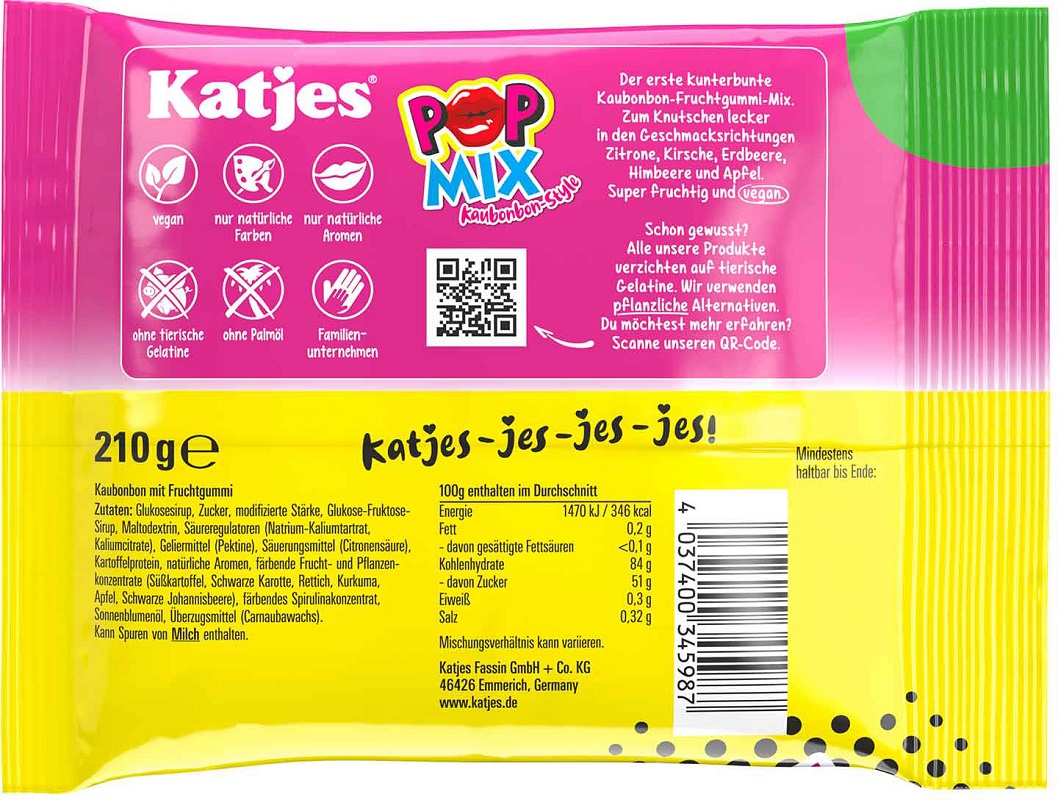 Katjes Pop Mix, Kaubonbons und Fruchtgummi Mix. Für Veganer geeignet im 210g Beu