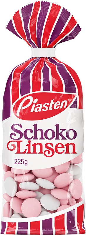 Piasten Schokolinsen leckere Schokoladen Dragees von kackiger Zuckerhülle umhüllt im 225g Beutel