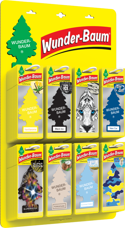 Wunder-Baum 96er Tafel Wandtafel 8/s (Duftbaum/Wunderbaum 1er Pack) "DNP Preis" - 12x Vanille, 12x Black Ice, 12x Wild Instinct, 12x New Car, 12x Supernova, 12x Kokosnuss, 12x Summer Cotton, 12x Pina Colada