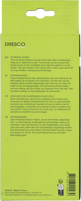 Dresco Fahrradaufhängung 2 Haken Kunststoffbeschichtet mit Kette ca. 50cm - Fahr