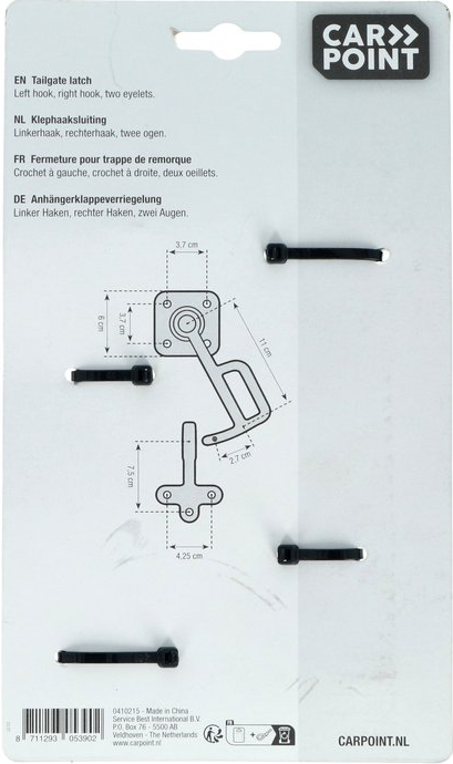 Carpoint Anhängerklappeverriegelung aus verzinktem Stahl Links & Rechts - Set bestehend aus: 1x linker-, 1x rechter Haken & 2x Ösen - zur Montage auf der Rückseite oder Seite der Klappe