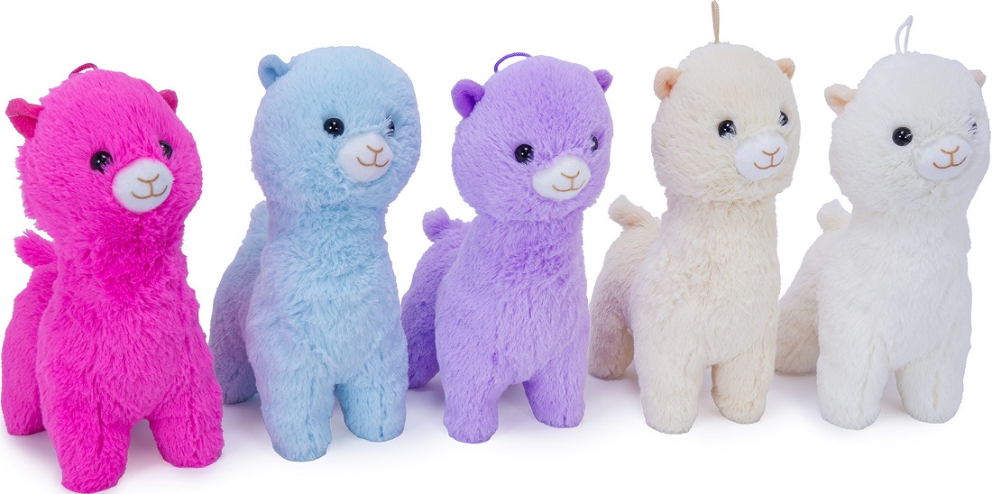 Plüsch Alpaka Bunt sortiert, stehend 5/s ca. 26cm (Pink, Baby-Blau, Lila, Creme,
