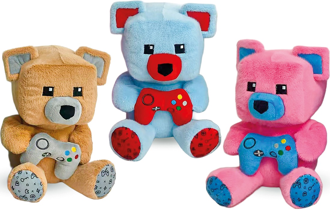 Plüsch Gaming Bären mit Controller 3/s ca. 25cm (Braun/Grau, Blau/Rot, Pink/Blau)