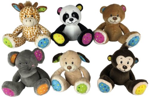 Plüsch Tiersortiment Ohren und Pfoten mit Sternenmuster 6/s ca. 14cm (Giraffe, Panda, Bär, Elefant, Hund, Affe)