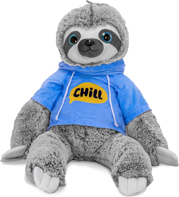 XXL Plüsch Faultier mit blauem Hoodie "Chill" & GlitzerAugen ca. 80cm