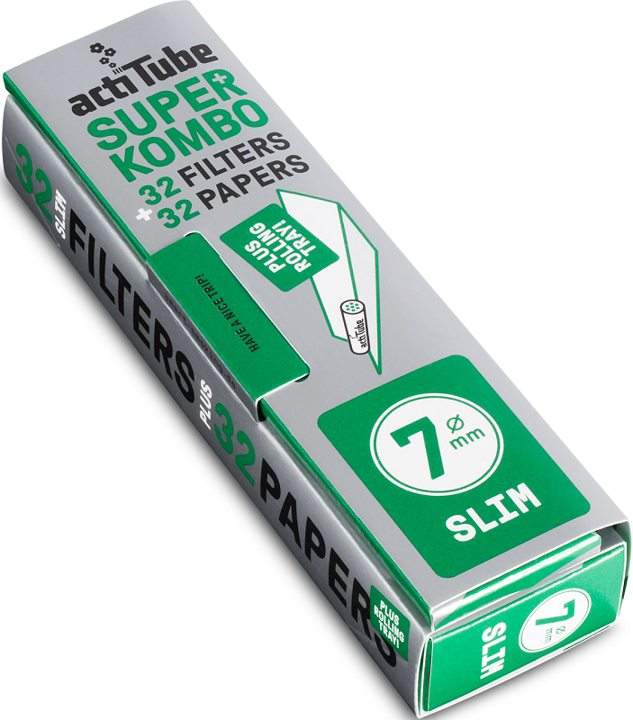 ACTITUBE Superkombo 7mm SLIM Filters + Papes mit Rolling Tray, je Heftchen 32 Fi