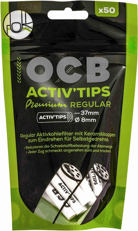 OCB Activ Tips Aktivkohlefilter mit Keramikkappen Regular 8mm 50 St. im Beutel 1