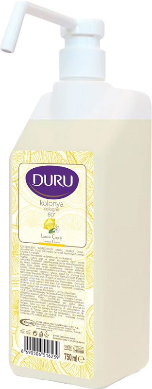 Duru Kolonya Zitrone, klassisches türkisches Eau de Cologne mit desinfizierender Wirkung & angenehmen Zitronenduft, in 750ml Flasche mit Pumpaufsatz